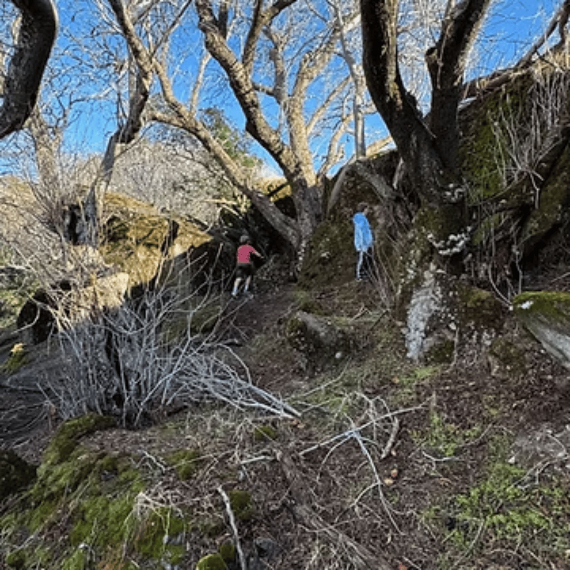 Nature photographers will find plenty of inspiration at Coyote Pond Park. The combination of dramatic rock formations, vibrant moss, and the interplay of light through tree branches creates endless opportunities for stunning shots. Even casual photographers can capture beautiful moments, as seen in the images provided. The juxtaposition of natural textures against the bright blue California sky is nothing short of magical.