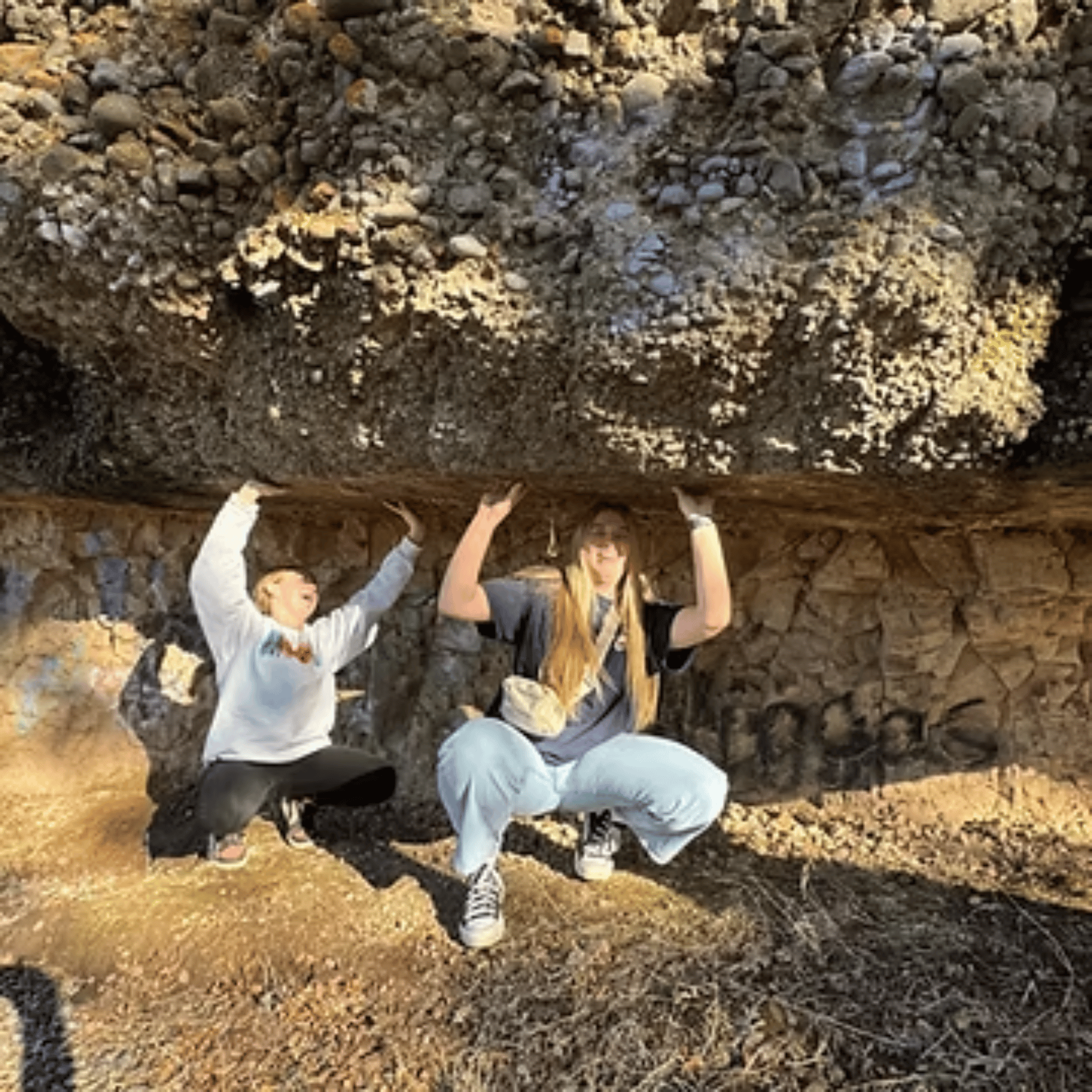 Coyote Pond Park is not just a typical city park. It's a place where nature and history blend seamlessly. One of the standout features of this park is its unique geological formations. As seen in the photos, large rock formations dominate the landscape, and some even create dramatic overhangs. These rocks are perfect for striking playful poses—pretending to "hold up" massive boulders makes for unforgettable pictures!